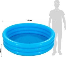 Az Intex Crystal Blue felfújható medence ideális választás a forró kerti napokra. Háromgyűrűs kialakításának köszönhetően stabil és kényelmes, a telepítés pedig csak néhány perc – terítsd ki sík felületre, fújd fel, majd töltsd fel vízzel. A minőségi vinil 0,23 mm fal- és 0,18 mm aljvastagsággal tartósságot és hosszú élettartamot garantál.