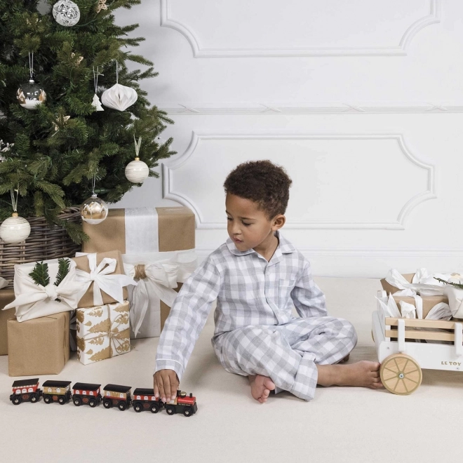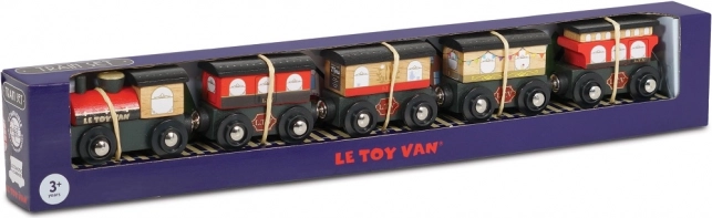 A stílusos ROYAL EXPRESS fa vonat a Le Toy Vantól örömet okoz gyerekeknek és szülőknek egyaránt. Mozdonyt és öt kocsit tartalmaz mágneses kapcsolattal, fenntartható fából készült, és vízbázisú, nem mérgező festékekkel van festve. Támogatja a finommotorikát, a képzeletbeli játékot, és kompatibilis a legtöbb fa vonatpályával.