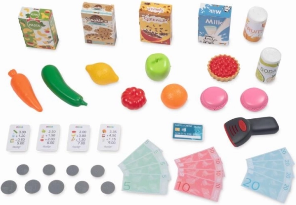 A szupermarket tartalmaz számos tartozékot, többek között ételes dobozokat, gyümölcsöket és zöldségeket, elektronikus szkennert és bevásárlókocsit. Ez a sokféleség valósághű eladó és vásárlói szerepjátékot tesz lehetővé.