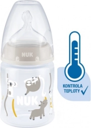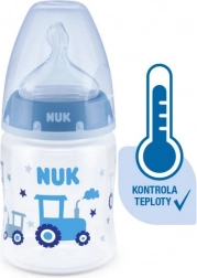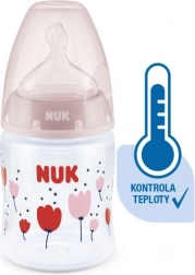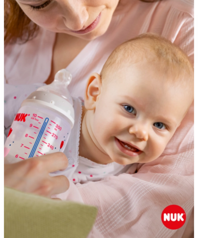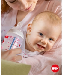 A hőmérséklet‑ellenőrzés segít a szülőknek eltalálni az optimális hőfokot, és ezáltal biztonságos táplálást biztosítani gyermeküknek. Nyugodt és biztonságos etetés a hőmérséklet‑kontrollnak köszönhetően. Amikor a baba éhes, az üvegben lévő tápláléknak nem szabad túl forrónak vagy túl hidegnek lennie. Ezért az anyukák és apukák minden étkezés előtt ellenőrzik a hőmérsékletet. Nem mindig egyszerű megállapítani, mikor megfelelő a hőfok. Ezért fejlesztették ki a NUK First Choice+ cumisüvegeket hőmérséklet‑ellenőrző funkcióval. Ilyen formában ez a funkció korábban még nem volt elérhető. A NUK First Choice+ cumisüvegek most új hőmérséklet‑jelzővel vannak ellátva, amely segít megelőzni, hogy a baba túl forró ételt igyon. A jelző hőmérőre hasonlít, a skálák között helyezkedik el, és a palack tartalmának hőmérséklete szerint változtatja a színét. Ez a funkció segít a szülőknek az optimális etetési hőmérséklet elérésében. Ha az étel túl meleg, a kék jelző fehérre vált. Ideális esetben a tápláléknak testhőmérsékletűnek (37 °C) kell lennie, ami a kijelző kék elszíneződésének felel meg. Figyelem: a hőmérséklet‑ellenőrzés kiegészítő ellenőrzésre szolgál. Etetés előtt a hőmérsékletet kézzel is meg kell vizsgálni. Az ellenőrzéshez ajánljuk, hogy cseppentsen néhány cseppet a palack tartalmából a csukló belső felére. A legtermészetesebb cumi a babának. A First Choice üvegek évek óta az első számú választás az anyamellhez leginkább hasonló cumisüveges etetéshez. A First Choice+ üvegekkel még közelebb kerültünk a természethez – támogatják az állkapocs egészséges fejlődését, és a babának olyan érzése van, mintha az anyamellből inna. Természetes és helyesen formált az állkapocs számára. A NUK egyedülálló cumiformája a szoptatáskor megnyúlt mellbimbó mintájára készült. A cumi elegendő teret hagy a baba nyelvének és állkapcsának természetes szopómozdulataihoz. Olyan puha, mint az anyamell. A szilikon cumi új, puha zónájának köszönhetően jobban idomul a baba szájpadlásához, így természetes ivásélményt biztosít. Megelőzi a hasfájást (kólikát). A továbbfejlesztett Anti‑Colic Air System levegőnyelés nélküli, egyenletes folyadékáramlást biztosít. Klinikailag tesztelt*. A cumi rendkívül természetes formája miatt a babák nagyon jól elfogadják. Ez azt jelenti, hogy különösen alkalmas azoknak a babáknak, akiket egyszerre szoptatnak és üvegből is etetnek. Cumisüveg: praktikus NUK hőmérséklet‑ellenőrző kijelző, amely kékről (hideg) fehérre (túl forró) vált; káros anyagoktól és szagoktól mentes – BPA‑mentes; könnyű megtöltés és tisztítás – extra széles üvegnyak; biztonságos fogás és stabilitás – az ergonomikusan formázott palacknak és a széles talpnak köszönhetően; korlátlan kombinációs lehetőség – kompatibilis minden NUK First Choice termékkel. *Tudományos tanulmány: Moral és mtsai, BMC Pediatrics 2010, 10:6. Részletek: http://nuk.com/research. Független piackutatás 205 gyermekorvossal, Németország, 2018. Az anyák 99%-a megerősítette, hogy a NUK First Choice+ Control üveg nem okoz kólikát. Fő jellemzők: az üveg tartalmának hőmérséklete megváltoztatja a jelző színét: ha az étel túl forró, a kék jelző fehérre vált; ideális a baba állkapcsának, különösen puha szilikon cumi, 0–6 hónap M (közepes nyílás = bébiételekhez); klinikailag tesztelt*: az optimális szoptatás‑ és üveges etetés kombinációjához; vonzó dizájn