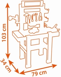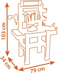 Ez a licencelt BLACK+DECKER munkapad a francia Smoby gyártótól autentikus műhelyélményt kínál a gyerekeknek. Gazdag felszerelésének, a perforált szerszámtartó falnak, a masszív satunak és a két, kosarakkal ellátott oldalsó szárnynak köszönhetően a kis ezermesterek mindent kéznél tudnak. A műhely játékos tanulásra ösztönöz – a gyerekek csavarozhatnak, kalapálhatnak, mérhetnek és saját modelleket építhetnek.