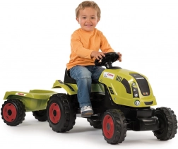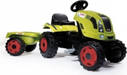 A CLAAS pedálos gyerek traktor zöld, levehető pótkocsival remek választás szabadtéri kalandokhoz. Állítható ülést kínál a gyermek magasságához, a kormányon dudát a még nagyobb mókáért, valamint felnyitható motorháztetőt az élethű játékhoz. Tartós, minőségi műanyagból készült a hosszú élettartamért.
