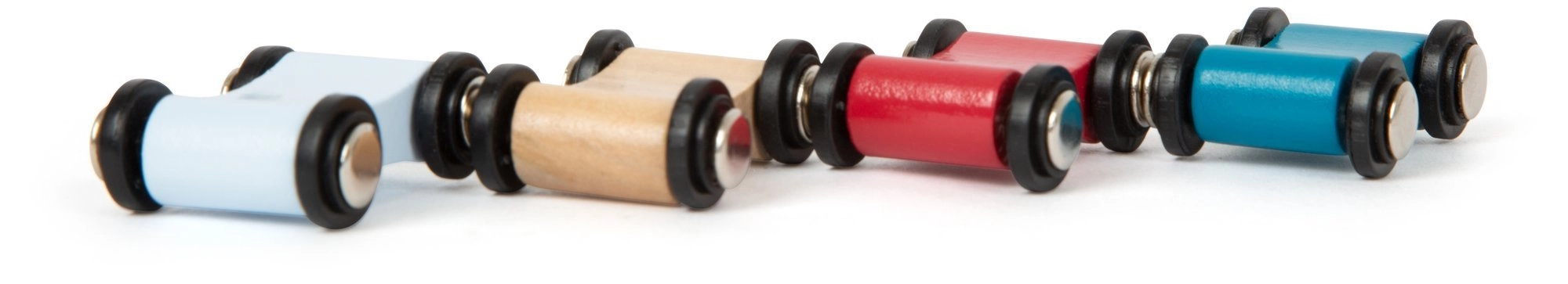 A készlet része 4 kis méretű autó különböző színekben – első versenyekhez, közös játékhoz és a színek tanulásához ideális.