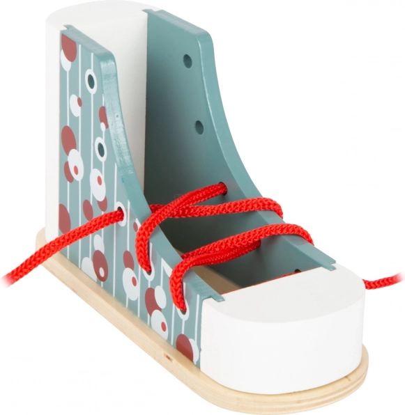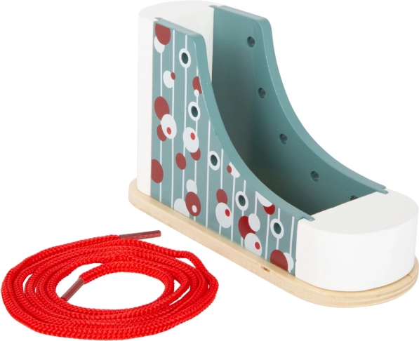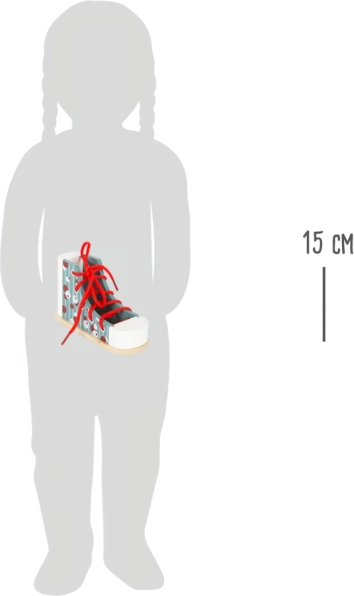 Ez a Small Foot márkájú fa cipő ideális eszköz a gyerekek számára, akik meg akarják tanulni a cipőkötés fortélyait. Modern dizájnjával és színes mintáival a gyerekek játék közben tanulnak, fejlesztik koordinációjukat és türelmüket. Stabil szerkezete révén a cipő ellenáll a kötési próbálkozásoknak, és alkalmas kisebb óvodáskorú gyerekek számára is.
