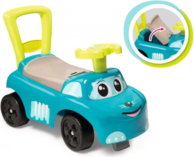 A kék roller úgy van kialakítva, hogy biztonságos és stabil mozgást nyújtson a kisgyerekeknek. Kényelmes ülése tárolóhellyel rendelkezik, amely lehetővé teszi, hogy a gyerekek elrejtsék a kis dolgokat. Visszafogó fogantyúval van felszerelve, amelyet a gyerekek könnyebb manőverezéshez használhatnak. Beépített védőszerkezetek akadályozzák meg a roller előre vagy hátra billenéssel.