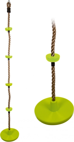 A többfunkciós mászókötél fellépő tárcsákkal és nagy alsó hintatárcsával órákon át tartó szórakozást kínál a gyerekeknek otthon és a kertben is. A masszív, fonott kötél, a bordázott, csúszásmentes tárcsák és a 100 kg teherbírás biztonságos játékot és az egyensúly, az erő és a koordináció edzését biztosítják.