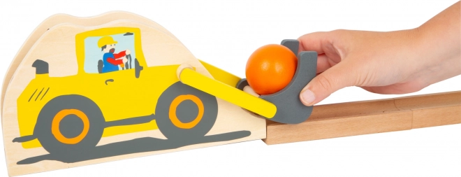 Fedezze fel a szórakoztató és biztonságos, természetes fából készült golyópályát a legkisebbeknek, építőgépekkel. A moduláris kialakításnak köszönhetően a gyerekek könnyen építenek változatos pályákat, fejlesztik finommotorikájukat és megismerkednek az ok-okozati összefüggésekkel. A nagy, színes golyók és a masszív elemek könnyen megfoghatók, és biztonságosak a kis kezek számára. A csomag tartalmaz markolót, billencset, építkezési kiegészítőket és 3 fa golyót a kreatív játék óráihoz.