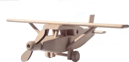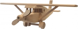 Ez a gondosan elkészített fa repülőgépmodell tömör bükkfából készül, természetes megjelenéssel – kizárólag viaszolva és polírozva, vegyi kezelések és színezékek nélkül. A precíz megmunkálásnak és a sima felületnek köszönhetően jól illeszkedik a gyerekek kezébe, és támogatja a képzelet és a finommotorika fejlődését.