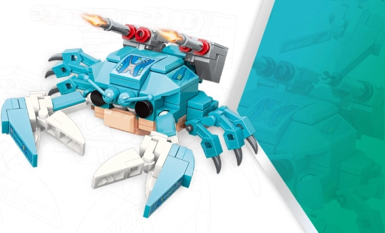 A készlet lehetővé teszi egy részletes robotmodell megépítését mozgatható elemekkel és apró ágyúkkal, ami támogatja a kreatív és akciódús játékot.