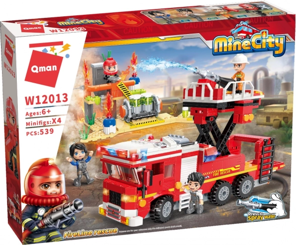 Építs meg egy akciódús bevetést a QMAN Mine City sorozat tűzoltó tartálykocsijával. 539 elem, 4 figura, működő vízágyú emelőkosáron és kiegészítők, köztük egy benzinkút-peron, hogy a játék még valóságosabb legyen. Az építőkészlet kompatibilis a Lego, Sluban, Cobi és más márkákkal, tartós ABS műanyagból készült, és 6 éves kortól ajánlott.