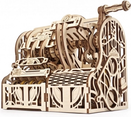 Ez a Ugears pénztár modell precízen kidolgozott fa mechanikus modell, amelyet a retro dizájn ihletett. Ennek a pénztárnak az összeszerelésével nemcsak egy szép kiegészítőt, hanem praktikus tárolóhelyet is kap az érmék és bankjegyek számára.