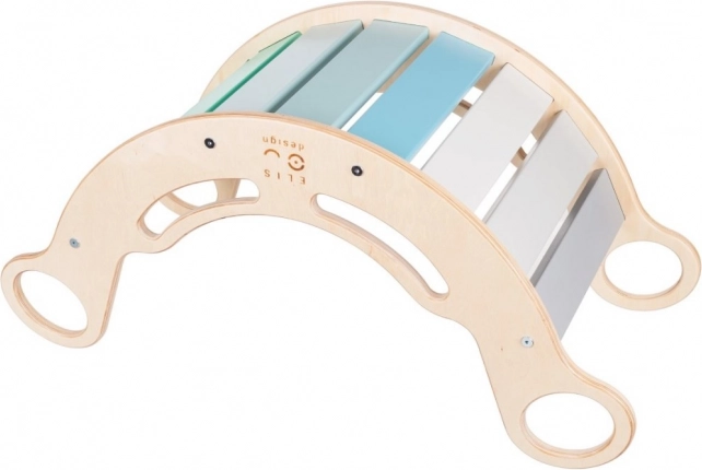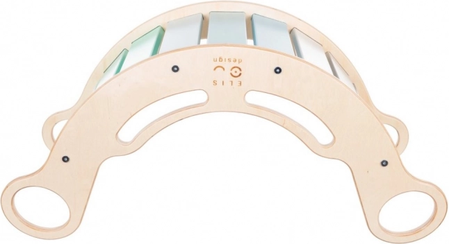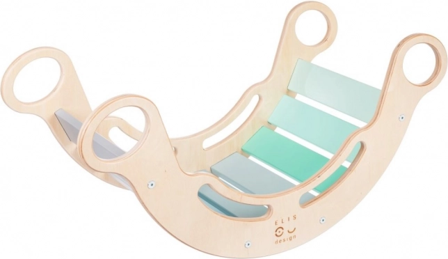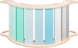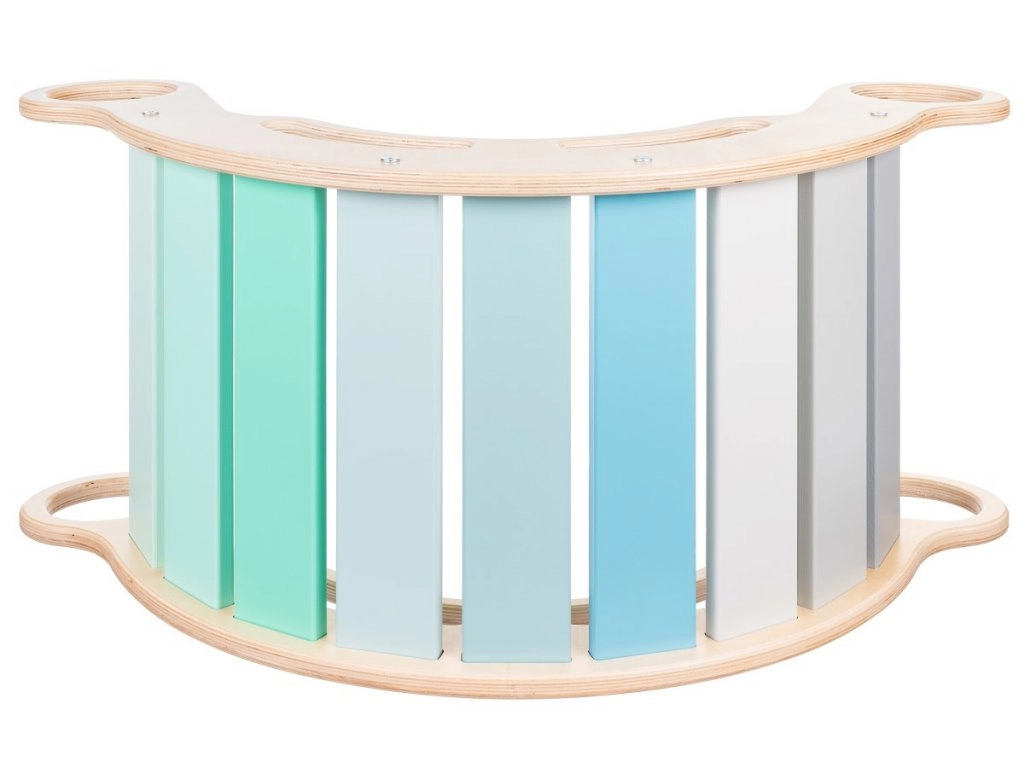 A Montessori szivárvány hinta 5 az 1-ben – türkiz átgondolt egyensúlyfejlesztő eszköz és játék a gyerekszobába vagy a nappaliba. Támogatja a finom- és nagymozgásokat, erősíti a törzsizmokat, és önállóságot, kreativitást fejleszt természetes játékkal. A nyír rétegelt lemezből készült masszív szerkezet, a sima, kézi megmunkálás és a tanúsított festékek maximális biztonságot nyújtanak.