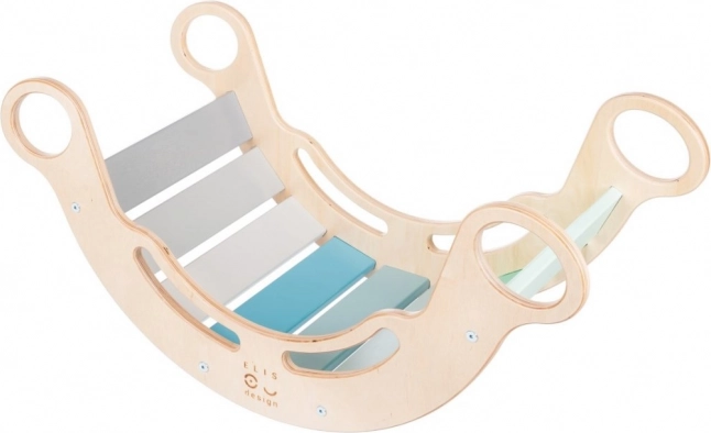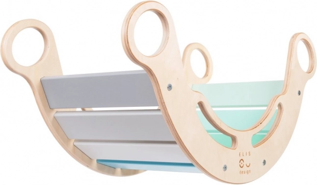 Az ELIS DESIGN univerzális 5 az 1-ben Montessori hintája támogatja a megfelelő mozgásfejlődést, a egyensúlyt és a koordinációt 12 hónapostól 8 éves korig. A masszív nyír rétegelt lemeznek és a 110 kg teherbírásnak köszönhetően hintaként, csúszdaként, mászókaként, ülőkeként és kis pultként is használható. A biztonságos 4 integrált fogantyú, a sima kidolgozás és az egészségre ártalmatlan lakkok biztonságos játékot és pihenést garantálnak.