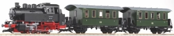 A PIKO kezdőkészlet DR III korszakú kivitelben nagy élményt nyújt G méretarányban. A BR 80 gőzmozdony krómozott kerékpárokkal és golyóscsapágyakkal sima futást biztosít, a világítás a menetirány szerint automatikusan vált, a pályamágnesekkel vezérelt integrált hang pedig fokozza az autentikus élményt. A mellékelt folyadékkal használható füstgenerátor tovább emeli a gőzüzem hangulatát.