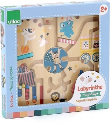 A VILAC mágneses labirintusa 2 éves kortól a cirkusz világát hozza el a gyerekeknek Michelle Carlslund lágy színeiben. A mágneses varázstollal a golyókat pályákon terelgetik, találkoznak akrobatákkal, állatokkal és bohócokkal, a végén pedig minden golyót a megfelelő helyre vezetnek a színe és száma alapján. A játék természetes módon fejleszti a koncentrációt és a türelmet.