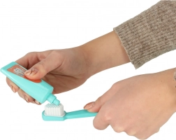 A játék fejleszti a finommotorikát, a képzelőerőt és a szociális készségeket. A valósághű kiegészítőknek – tükör, fecskendő és „fúró” – köszönhetően a gyerekek stressz nélkül sajátítják el a helyes fogmosást és a fogászati ellenőrzés rutinját.