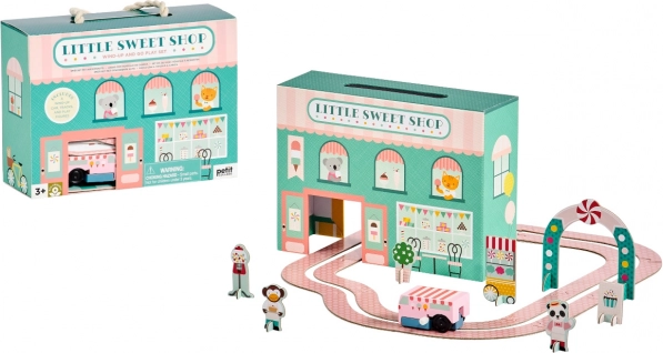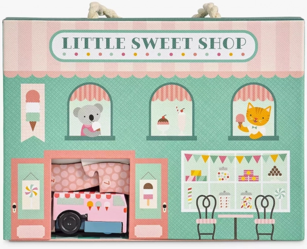 Ez a bájos játékkészlet az édességek és a fantázia világába repíti a gyerekeket. Húzd fel a fagyis autót, nézd, ahogy körbejárja a cukrászdát, és alkoss saját történeteket. A kompakt méreteknek és a praktikus fülnek köszönhetően utazáshoz is ideális.