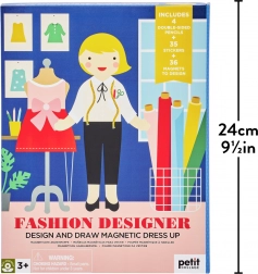A játék tartalmaz egy mágneses figurát faállvánnyal, 36 mágneses ruhadarabot, 4 kétoldalas ceruzát és 35 matricát, ami több mint 100 különböző összeállítási lehetőséget biztosít. A gyerekek kifejezhetik kreativitásukat és fejleszthetik képzelőerejüket a darabok sokféleségének és a kombinálási lehetőségeknek köszönhetően. A doboz nemcsak tárolóként, hanem kellemes háttérként is szolgál a játékhoz, így az élmény teljes körű és esztétikus.