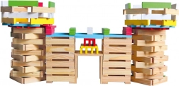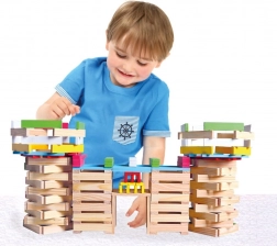 Ezzel az építőkészlettel nincs határ a gyermeki képzelet előtt! A fa építőkészlet Bino város összesen 150 darabot tartalmaz, amelyek lehetővé teszik a különböző struktúrák építését és támogatják a logikus gondolkodást a gondosan kidolgozott design és színes ellentétek révén.