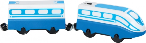 A Bino márkájú nagysebességű elektromos szerelvény örömet szerez a kis mozdonyvezetőknek: elektromos hajtás 1× AA elemmel, kompatibilis minden szabványos fa sínnel, valamint tartós, egészségre ártalmatlan anyagok teszik belőle remek vonatot a mindennapi játékhoz. A mozdony és a kocsi mágnesekkel kapcsolódnak, és lenyűgöz a valósághű megjelenéssel és élénk színekkel.