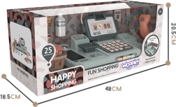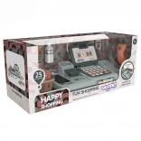 A készlet része a pénztár mérleggel, terminállal, számológéppel, szkennerrel és sok kiegészítővel, beleértve a játék okostelefont és különféle műanyag élelmiszereket.
