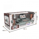 Gyerek pénztár Woopie elengedhetetlen minden kis kereskedő számára. Fel van szerelve kalkulátorral LCD kijelzővel, ahol a számjegyek megjelennek, valamint hangos leolvasóval, ami valósághű vásárlási élményt nyújt.