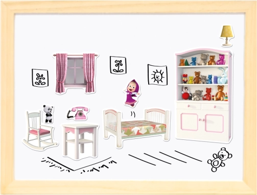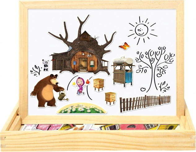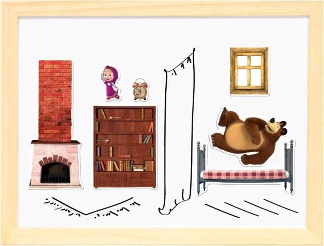 A kétoldalas mágneses tábla a „Mása és a medve” népszerű sorozat motívumaival végtelen órányi szórakozást és kreativitást kínál. A tábla kétoldalúan használható: