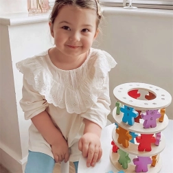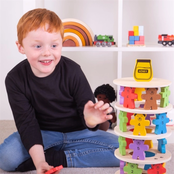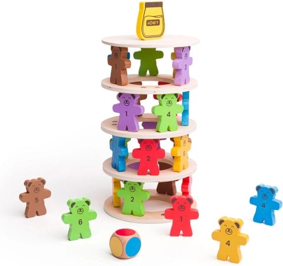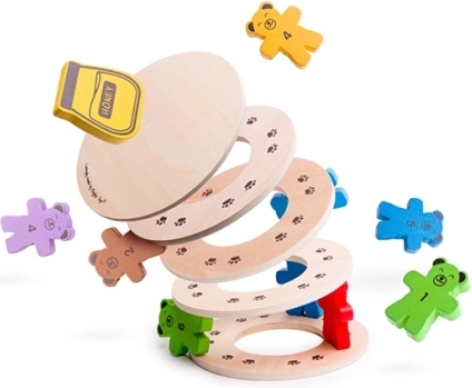 Fedezze fel a Leeső Medvéket, a szórakoztató és egyben oktatási fa játékot gyerekek számára. Ez a játék segíti a finommotorika, a stratégiai gondolkodás, valamint a színek és számok felismerésének fejlesztését. A cél, hogy a medvetornyot minél magasabbra építse anélkül, hogy az összedőlne.