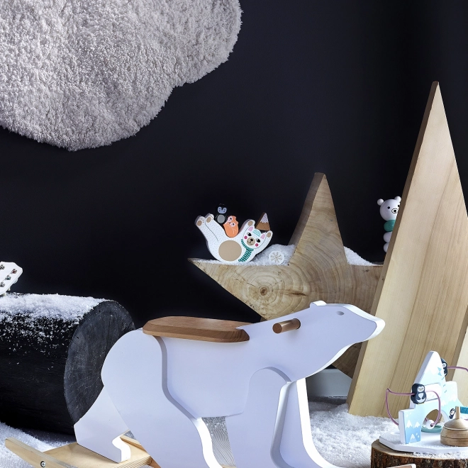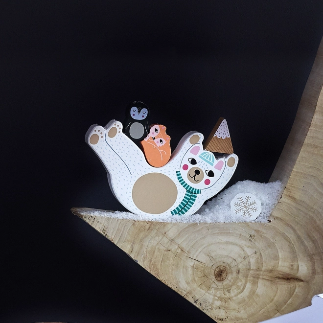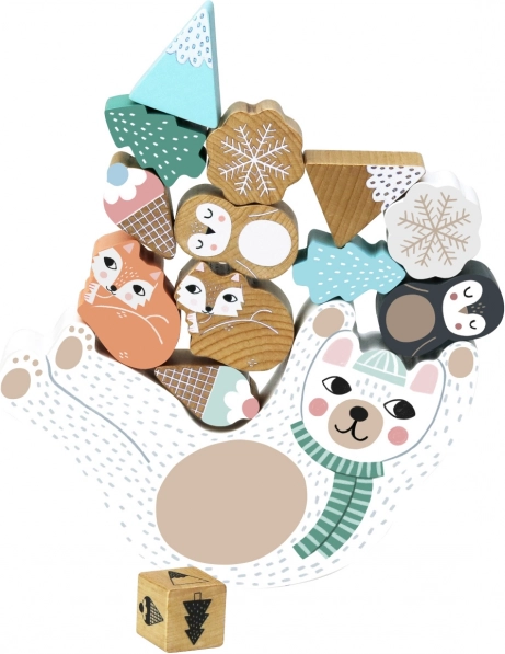 A gyerekek állatkákat, pelyheket és formákat rakosgatnak a hintázó mackóra, és megtanulják érzékenyen kiegyensúlyozni minden elemet.