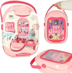 Kozmetikai szett hordozható bőröndben kis parádésoknak és leendő fodrászoknak, rengeteg kiegészítővel a kreatív játékhoz: hajszárító, fésű, tükör, csatok, gyűrűk, karkötők és színes üvegcsék. A bőrönd átlátszó névjegyablakkal rendelkezik – helyezzen be egy képet vagy a gyermek nevét, és alkosson egyedi szettet a szerepjátékhoz. Kiváló a finommotorika és a szociális készségek fejlesztésére. Nem tartalmaz valódi kozmetikumokat.