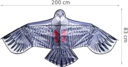 Ez a ragadozó madár formájú sárkány egyedi repülési élményt nyújt, ideális szórakozáshoz a természetben. A szárnyak 200 cm-es fesztávolságukkal úgy lettek tervezve, hogy valódi madár repülési benyomást keltsenek. Nylonból és üvegszálakból készült tartós szerkezete biztosítja, hogy még enyhe szélben is megállja a helyét.