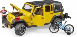 Bruder Jeep Wrangler Rubicon kerékpárossal és kerékpárral