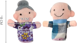 Aranyos ujjbáb-készlet, amely egy teljes családot: anyukát, apukát, fiút, lányt, nagymamát és nagypapát mutat be. A puha plüss anyagnak, a élénk színeknek és a könnyű kialakításnak köszönhetően remekül illeszkednek a gyermekujjakra, és támogatják a kreativitást, a mesélést és a finommotorikát. A kompakt méret könnyű tárolást és hordozhatóságot biztosít.