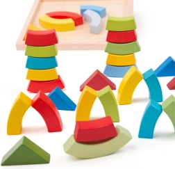 A BIGJIGS TOYS fa ívei és háromszögei ideálisak a szabad játékhoz. A gyerekek rakosgathatnak, építhetnek és kísérletezhetnek az alakzatokkal és az egyensúllyal, ezáltal természetes módon fejlesztik képzeletüket és logikus gondolkodásukat. A praktikus fa talp megkönnyíti a tárolást és a hordozást.