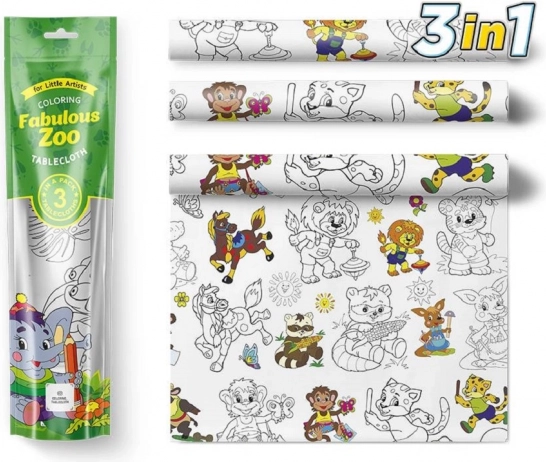 Minden terítő könnyen három részre osztható, ami támogatja az együttműködést és a megosztást több gyermek között. A színezés ösztönzi a kreativitást, javítja a koncentrációt és a finommotorikát. A terítő használható gyerekzsúrokon, de akár hagyományos asztalterítőként is.