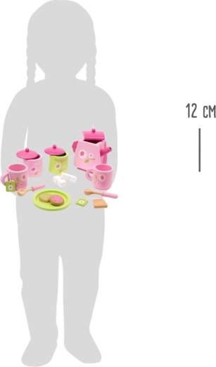 Ajándékozzon gyermekeinek végtelen órányi szórakozást a gyönyörű Rose fa teaszettel. A készlet mindent tartalmaz, ami egy tökéletes teapartihoz szükséges – teáskanna, fedeles csészék, cukortartó, teafilterek, kanalak, cukorkockák és kekszek. Minden elem finom virágmintával díszített, ami bájt kölcsönöz az összhatásnak.