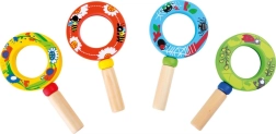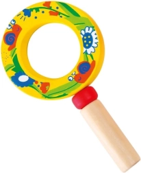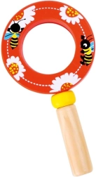 Ez a minőségi gyerek nagyító masszív fa fogantyút és könnyű műanyag lencseelemet kombinál, hogy biztonságos és kényelmes legyen a kis kezeknek. Vidám rovar- és virágillusztrációi a környező világ részleteinek felfedezésére ösztönzik a gyerekeket – a virágoktól a kis bogarakig.