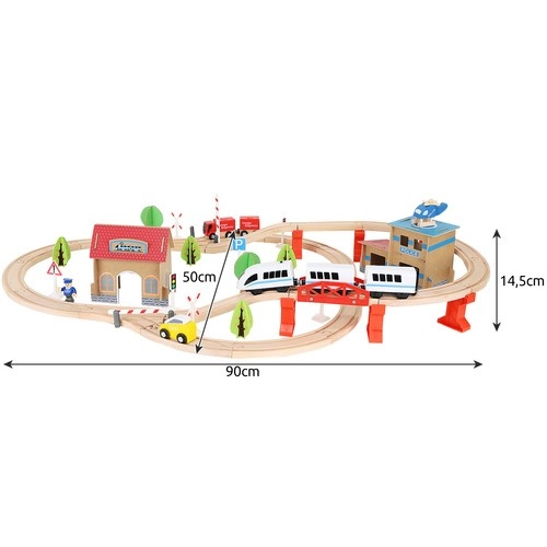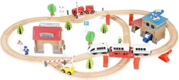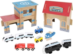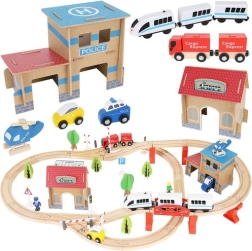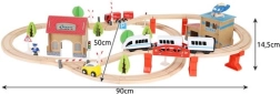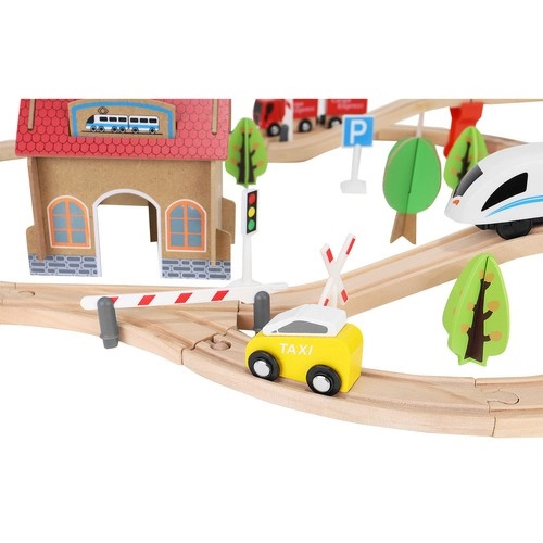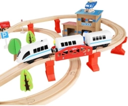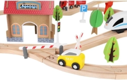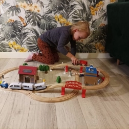 A fa vonatkészlet tökéletes választás minden gyermek számára, fejleszti a kreativitást és mozgáskoordinációt, miközben a biztonságot is szem előtt tartja.