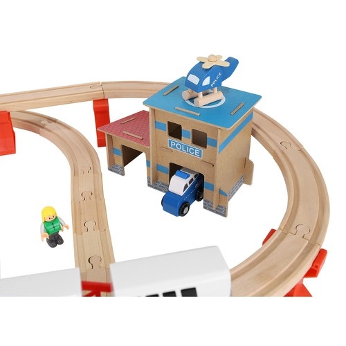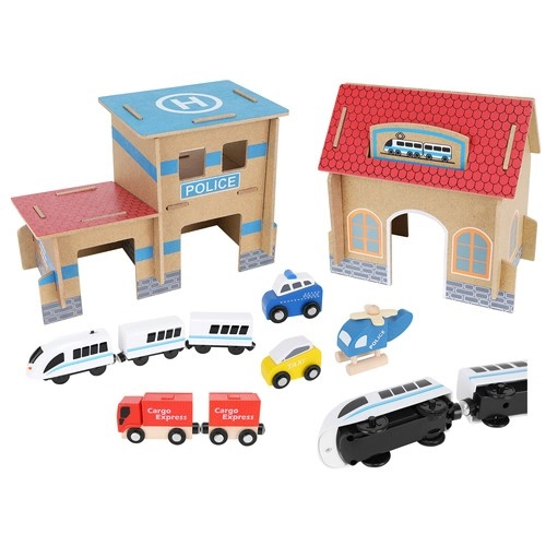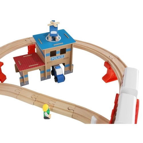 - 89 darabos készlet – A készlet tartalmaz pályaelemeket, vonatot, autókat, rendőrségi helikoptert, állomást, hidat, fák és közlekedési táblákat. A vonat és a teherautó mágneses kapcsolódású, nincs benne törékeny horgok.