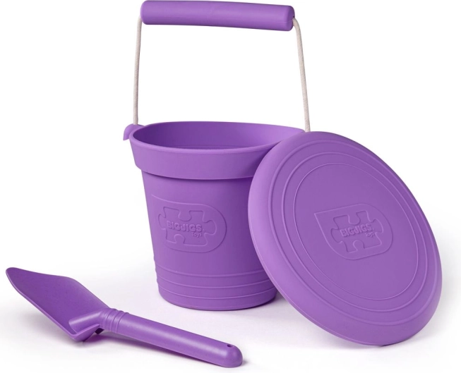 A BIGJIGS TOYS szilikon strandvödör lila színben remek társ a kis felfedezőknek. Rugalmas, élelmiszeripari szilikonjának köszönhetően egyszerűen feltekerheted és beteszed a hátizsákba vagy táskába, és indulhatsz a kalandra. Kicsomagolás után mindig visszatér eredeti formájába, és bírja a vizet, a homokot és a mindennapos használatot.