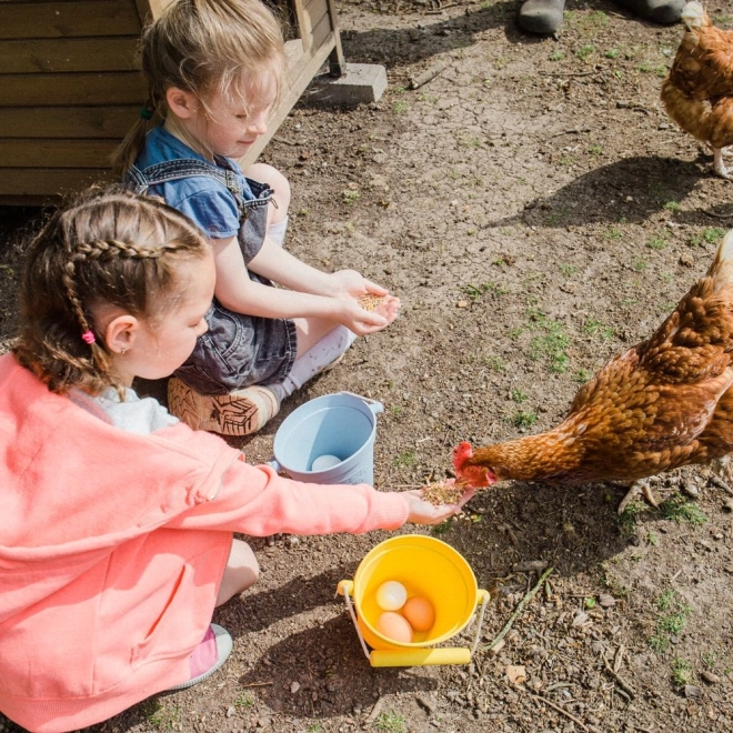 Jól jön a kertben, az udvaron és kirándulásokon is. A gyerekek vizet hordhatnak, terméseket gyűjthetnek vagy kisebb feladatokban segíthetnek – mindig biztonságosan és játékosan.