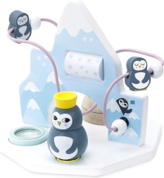 A Motorikus labirintus – Sziget a játékot és a tanulást színes pingvinekkel köti össze, amelyek a labirintuson csúsznak lefelé. A gyerekek nemcsak motorikus képességeiket gyakorolják, hanem közben jókat szórakoznak mozgással és mókával. A játék fő előnyei közé tartozik a kreativitás és a logikus gondolkodás támogatása. Emellett a darab ismert dán illusztrátor, Michelle Carlslund dizájnja.