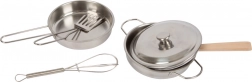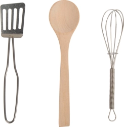 Tartalmaz egy fedeles fazekat, serpenyőt, habverőt, lapátot és fakanalat, amelyek segítenek a szakácsos játékban.