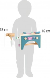 Ez a fa szerszámos láda ideális olyan gyerekek számára, akik szeretnék utánozni a valós javításokat és kézműves munkákat. Egyszerű skandináv dizájn finom pasztell színekben, amely jól illik bármely gyerekszobába: