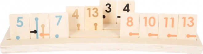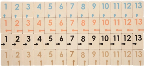 A masszív fa lapkák számozott nyomattal és szimbólumokkal jól olvashatók és kellemes tapintásúak. A kombinációk kirakásakor a enyhén ívelt fa tartók gondoskodnak a stabilitásról és a diszkrécióról. A játék fejleszti a logikus gondolkodást, a stratégiát és a koncentrációt minden korosztály számára.