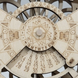 A naptár nemcsak mint funkcionális eszköz szolgál, hanem modern enteriőr dekorációként is használható, amely bármilyen szoba vagy iroda díszévé válhat. Minőségi fából készült és valós élményt kínál a mozgó részekkel való manipuláláshoz.