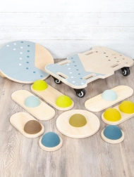 A fa egyensúlyozó deszka Adventure ideális azoknak a kisgyerekeknek, akik aktív mozgásra vágynak. A kötéllyuk és az oldalsó kerekek révén a manőverezés könnyű, az nyílások körüli védelem pedig megvédi a kezeket. Az egyszerű és természetes kivitelű deszka tökéletesen illik bármely gyerekszobába.