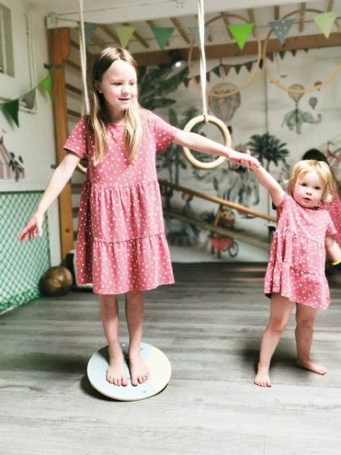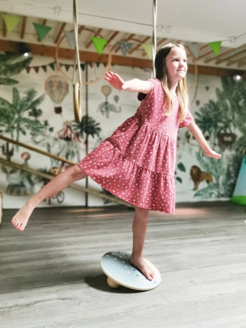 A small foot Adventure egyensúlyozó deszkája játékos mozgást és motorikus fejlesztést kínál a gyerekeknek. A 34 cm átmérőjű kerek lap stabilitást és biztonságot nyújt, míg a két fa golyó az alján különböző pozíciókba csavarható a nehézségi szint változtatásához. Így könnyen a gyermek életkorához és készségeihez igazítható a tréning.