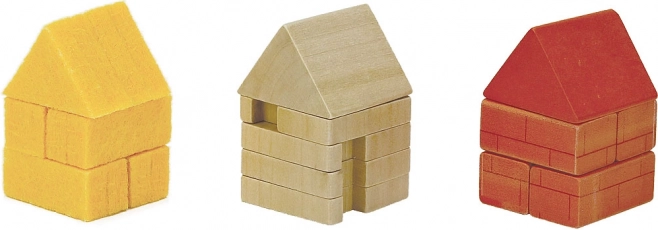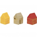 Masszív fa elemek és színes formák csábítanak a házikók építésére és a farkas kirakására. A gyerekek természetesen fejlesztik finommotorikájukat és fantáziájukat.