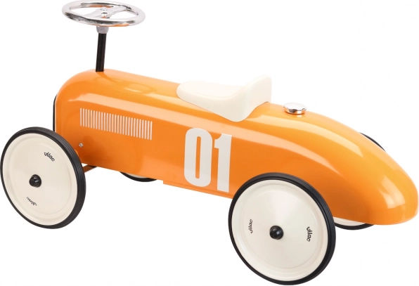 Stílusos gyerek futóbicikli vintage versenyautós dizájnnal, amely 18 hónapos kortól örömet szerez a kis sofőröknek. Teljesen fém vázzal, csendes, gumírozott kerekekkel, precíz kormányzással és 20 kg teherbírással. A narancssárga metál szín és a fehér ülés feldobja a játékot bent és kint egyaránt.